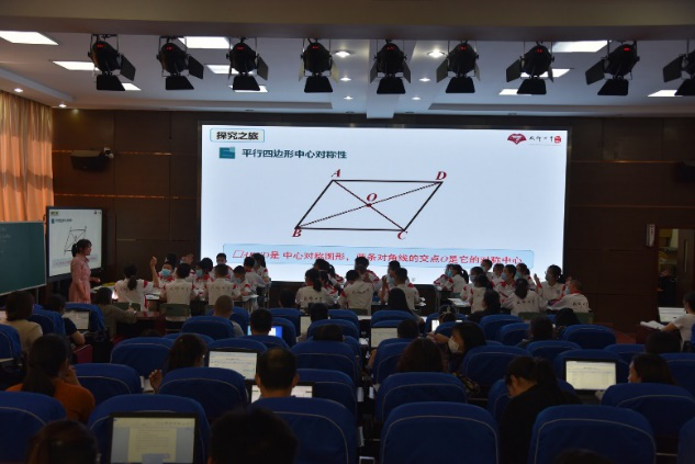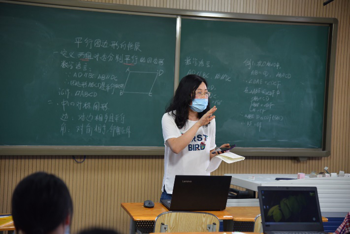 6月2日,在经历了三次较大规模的集体磨课之后,数学组郑婷老师以《平行四边形的性质》一课参赛,校区全体教职工都到课堂观课。