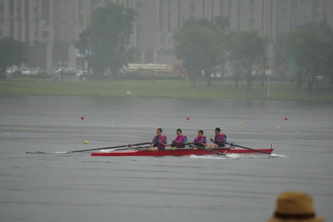 上午8:30,比赛正式开始,平均年龄不足16岁的孩子们,团结一心,披荆斩浪,在乙组男子双人双桨、甲组男子四人单桨、甲组男子双人双桨、乙组男子四人单桨四个项目中,一揽冠、亚、季军。