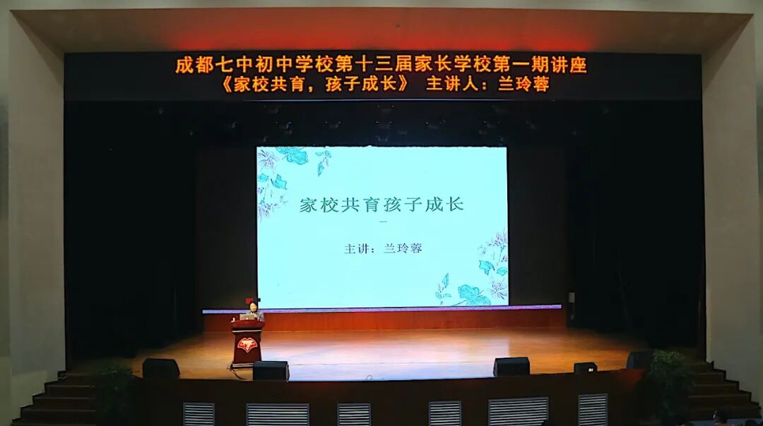 为提升家庭教育质量,促进家校合作,以更好地发挥教育的育人效能,成都七中初中学校第十三届第一期家长学校特邀请了四川省心理学会中小学心理健康教育专委会秘书长、高级心理咨询师、心理学科高级教师兰铃蓉老师为我校家长带来了题为《家校共育,陪伴孩子成长》的专题讲座。
