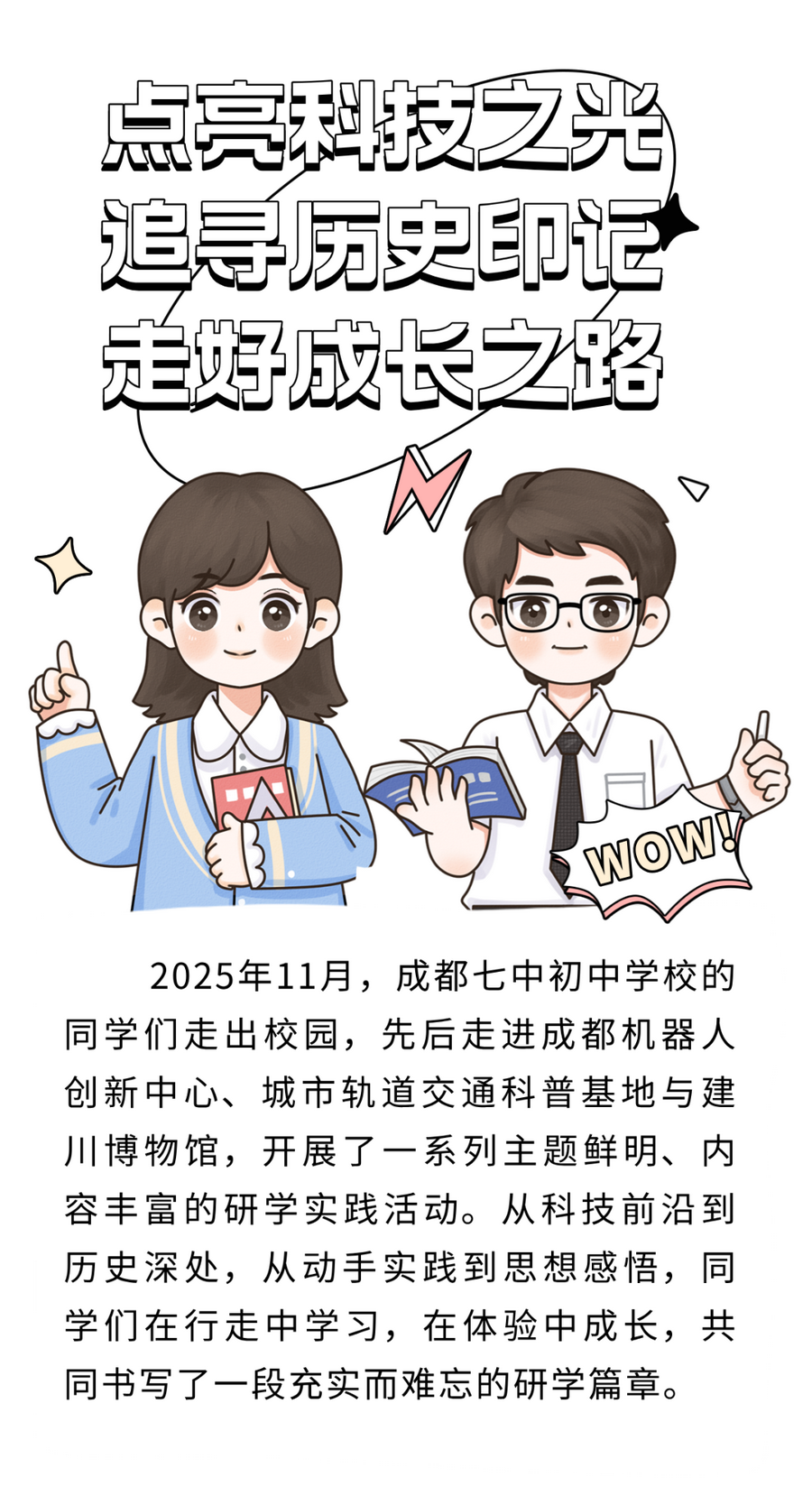 成长,于行走间悄然发生;感悟,在体验中愈发深刻。 此次系列研学活动,同学们既触摸到科技的前沿,也聆听了历史的回响;既锻炼了动手能力,也深化了思想认知。期待更多学子于立志成才活动中坚定理想、扎实本领,在实现个人价值的同时,积极为国家的发展和社会的进步贡献自己的青春力量。