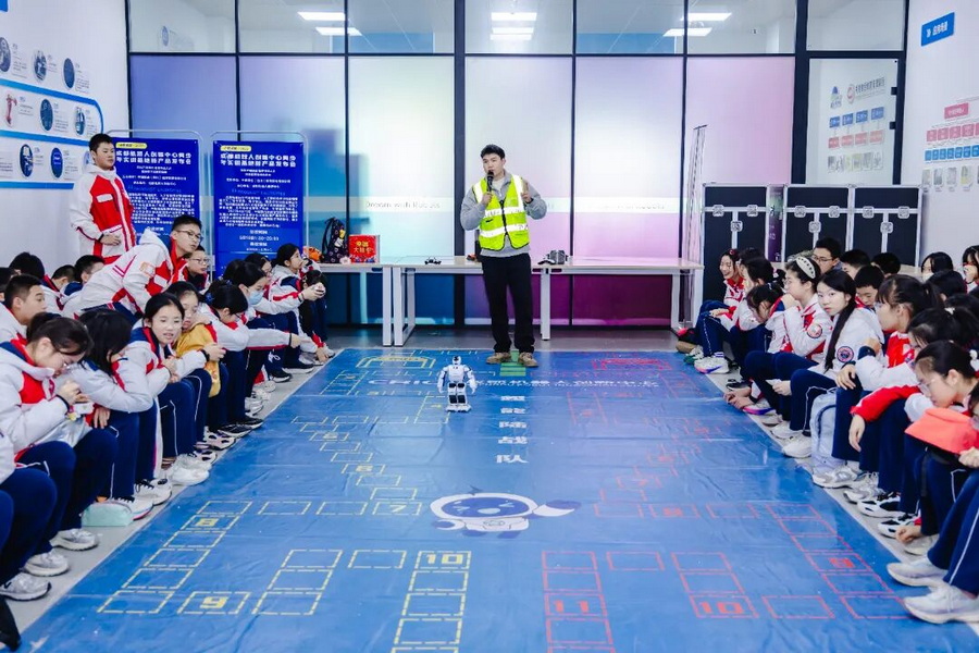 在成都机器人创新中心,同学们开启了一场沉浸式的科技探索之旅,在“探秘机械文明”“机器人总动员”“科创作品 DIY”“超能陆战队”“无所不能的机器人”五大主题活动中,大家近距离感受科技魅力,启迪创新思维。