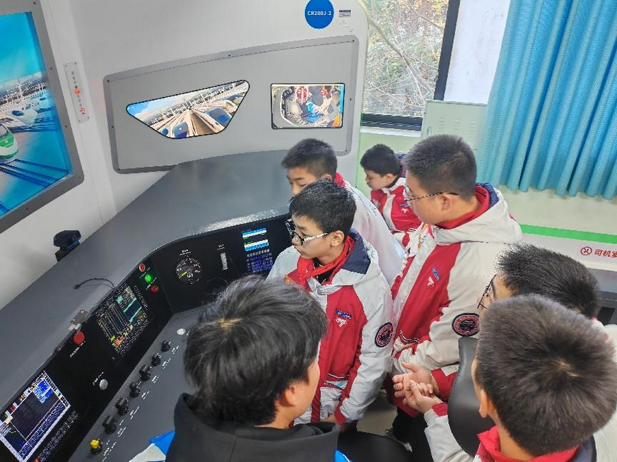 在学院模拟驾驶室,一比一还原的操作台让同学们仿佛置身真实驾驶舱。大家亲手推动操控杆,感受启动震动,窗外虚拟景象飞掠而过,对“火车司机”这一职业有了更直观的认识。