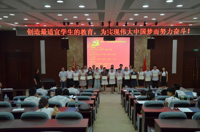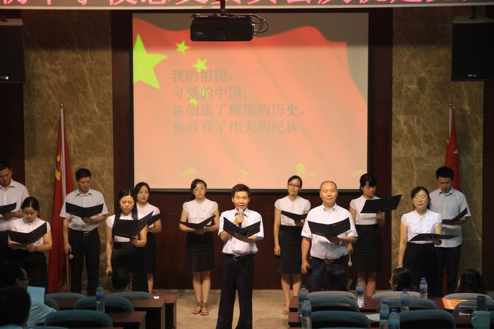庆祝大会在雄壮的国歌声中拉开了序幕,学校党总支部委员、副校长邱兴华同志主持了会议。在肃穆的会场气氛中,新党员唐霖勇庄严宣誓,全体党员同时肃立并举起右手,一起重温昔日入党誓言,字字铿锵,激越响亮,庄严的誓言把党员们带进了当初入党的那激动的时刻,感受到了作为一名党员的神圣使命,明白了党员应该持之以恒地高扬创业激情,“为共产主义奋斗终身”,始终以高昂的热情与创业的力量,脚踏实地,将共产党员良好的精神面貌贯穿在工作、学习中,始终以崇高的政治觉悟,勇于担当,成为全校师生的楷模。党总支副书记杨斌校长宣读了胡荣等22名优秀党员的表彰决定,在激越的音乐声中,优秀党员们登台接受奖励。
