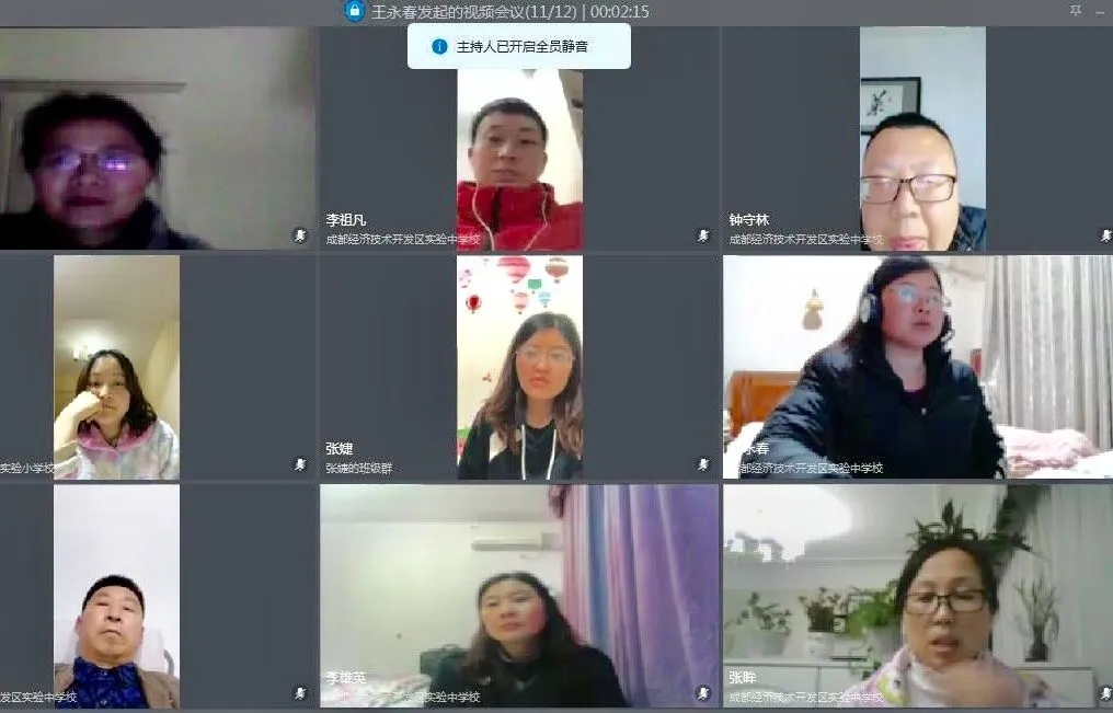 ▲工作室核心成员、成都市西北中学外国语学校王国贤校长主持在线教学筹备会
