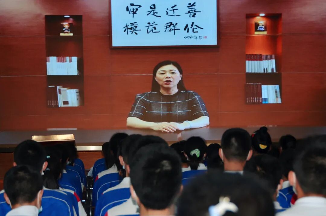 ▲李笑非校长通过视频连线为锦城校区初三学子加油