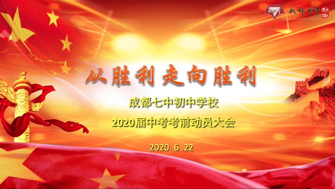 时光转瞬即逝,此刻,我们蓄势待发,期许一个个五彩缤纷的梦在七月绽放。让我们用拼搏实现青春的诺言,让我们用汗水浇灌理想的花蕾!三年苦读磨一剑,气定神闲战犹酣,势如破竹捣黄龙,千帆竞发齐凯旋!中考的战鼓已然敲响,在这里,我们衷心地祝愿2020届全体同学中考顺利、再创佳绩!