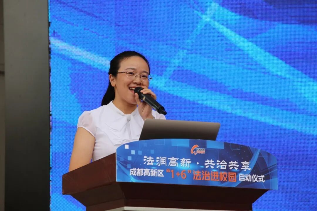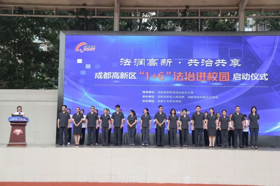成都高新区党工委政法委专职副书记、应急管理局局长樊晓峰,成都高新区人民法院党组书记、院长刘庆华,成都高新区教育文化和卫生健康局教育处叶春云处长等领导,成都高新区人民法院法官,成都高新区十五所中小学校长以及成都七中初中学校师生参与了此次启动仪式。成都七中初中学校学生成长中心副主任何鑫老师主持本次活动。