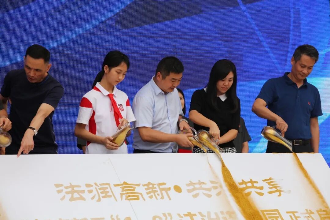 樊晓峰副书记、刘庆华院长、叶春云处长、邱兴华副校长上台共同开启高新区“1+6”法治进校园活动启动仪式。