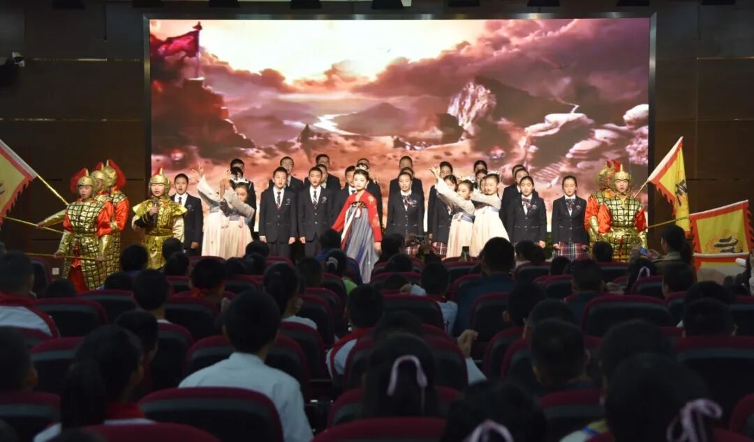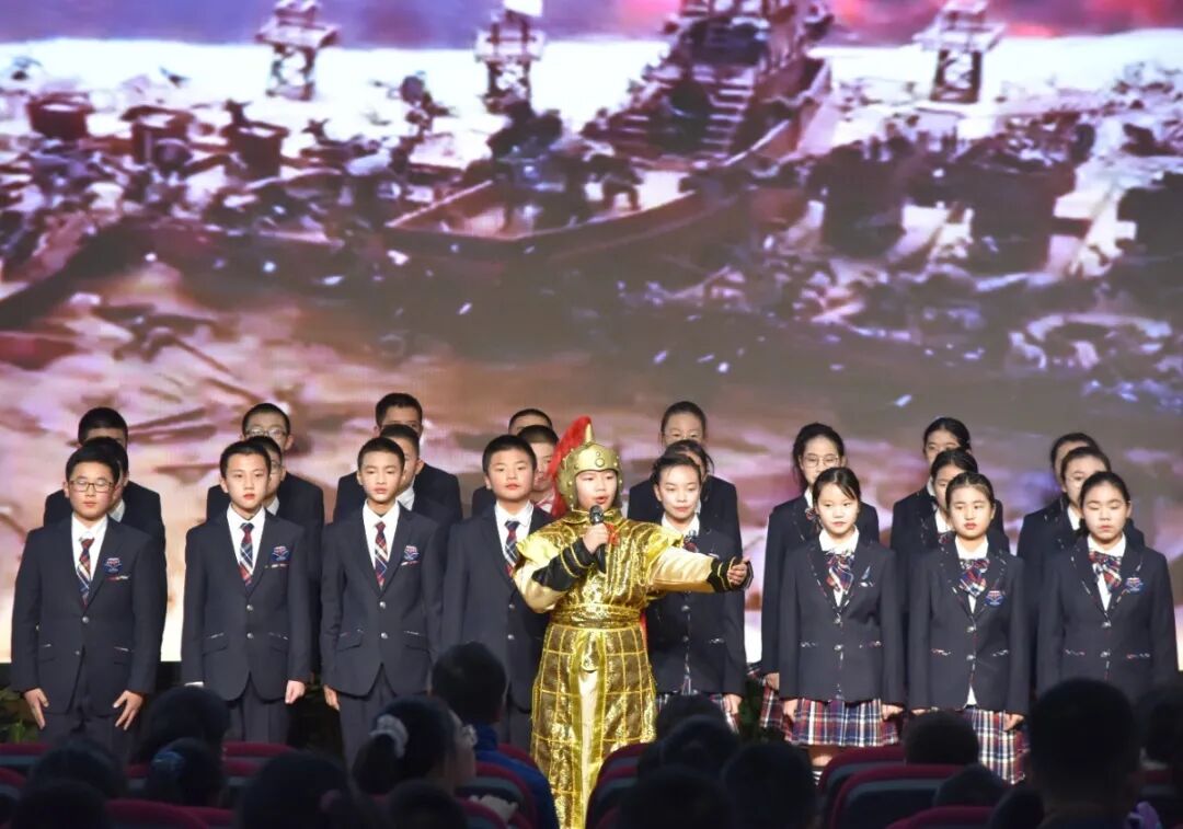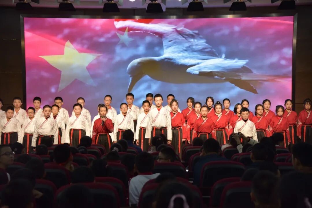 二班同学仰望苍穹、俯视大地,在“与我金戈铁马,守我锦绣山河”的誓言中感怀先烈,憧憬祖国的华丽未来。