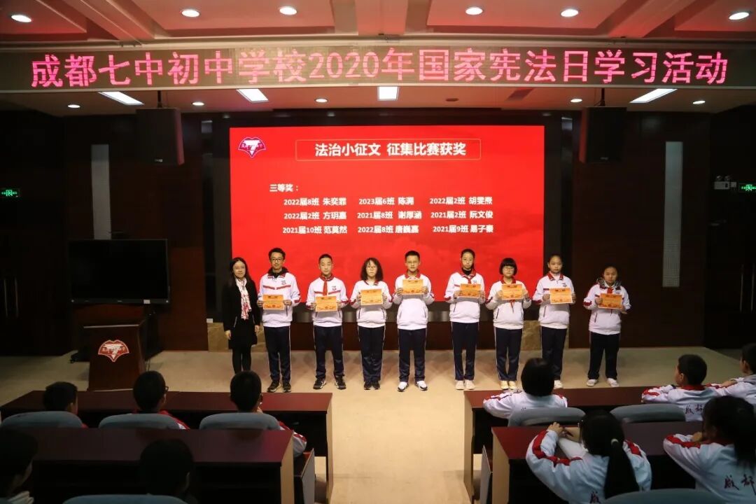 少年强则国强,少年智则国智。青少年法治宣传教育事关全面依法治国的深度、广度和温度。为增强师生的法治意识、弘扬宪法精神、营造“学法、知法、守法、尊法、信法、用法”的法治氛围,成都七中初中学校开展了丰富多彩的宪法与法治精神宣传活动。
