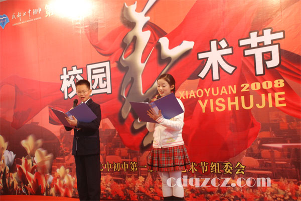 红歌比赛节目主持人(分别来自1班张逸文、6班付裕如)