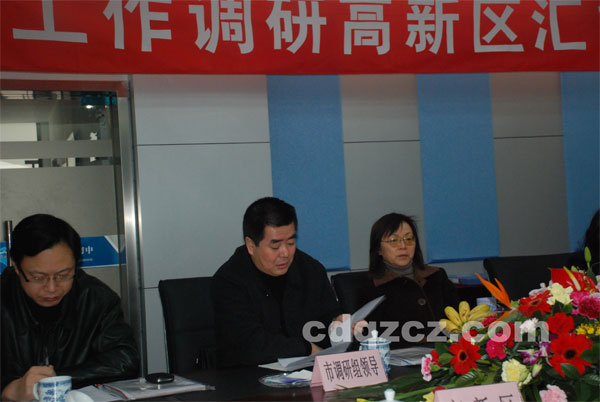 成都市政府督学胡齐鸣(中)认真听取汇报