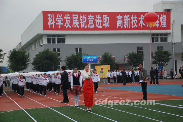 我校参赛队伍在引领员带领下进入开幕式会场