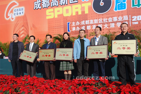 11月6日、7日为期两天的高新区第六届中小学生运动会在高新大源中学举行,我校共派出160名同学参加了趣味篮球、中国象棋、五子棋、滚铁环、校园华尔兹、中学生广播体操、迎面接力等比赛项目。我校所有参赛学生均来自初一年级,他们面临的参赛对手都是初二、初三、甚至高中学生,此次比赛训练时间较短,但是我校同学在运动会中任然表现突出,最后获得团体二等奖。其中初2011级6班谢子凝、4班易蔚同学分别获得女子五子棋比赛第一、二名;初2011级4班项浩哲获得男子五子棋第一名;广播体操第二名;趣味篮球比赛第二名;初2011级5班罗皓天获得男子五子棋第三名;初2011级2班王治乔、蒋弘洋分别获得男子象棋第4名和第6名。