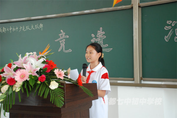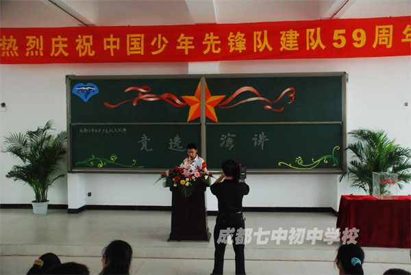 10月13日是中国少年先锋队成立59周年纪念日,我校在学校阶梯教室举行少年先锋队大队委竞选演讲活动,学校大队辅导员罗志英老师主持了演讲竞赛大会,全校共有18名同学参加了竞选演讲。全校近三百名同学参加了投票。学校李笑非校长、教育处王岚老师、课外活动总辅导员吴旭光老师、初一年级各班班主任出席了此次竞选演讲大会。