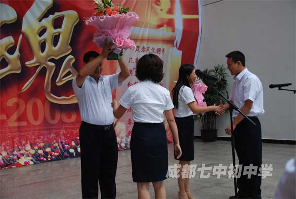 代表向全体教师献鲜花教师节上鲜花也献给后勤人员时装表演