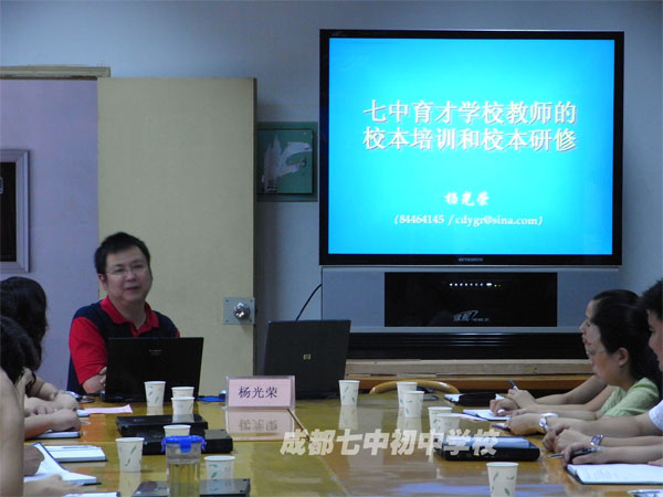杨光荣校长在做《七中育才学校教师的校本培训和校本研修》报告