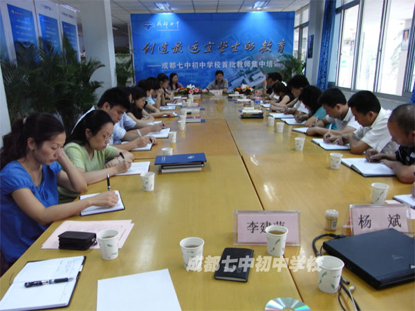 在上午的培训中,刘国伟校长全面阐述了成都七中“着眼整体发展,注重个体成材,充分发挥学生主体作用”的“三体教育”办学思想,也明确了成都七中“学生成材,教师成功,学校领先”的办学目标。他还着重强调了七中初中学校要加强教师队伍建设,组建一支高素质、业务精湛、专业知识扎实,可以打硬仗的教师队伍。