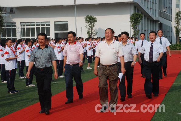 高新区社会事业局吕毅局长、成都七中高中部所有校级领导以及我校领导正在学生的掌声中步入主席台。