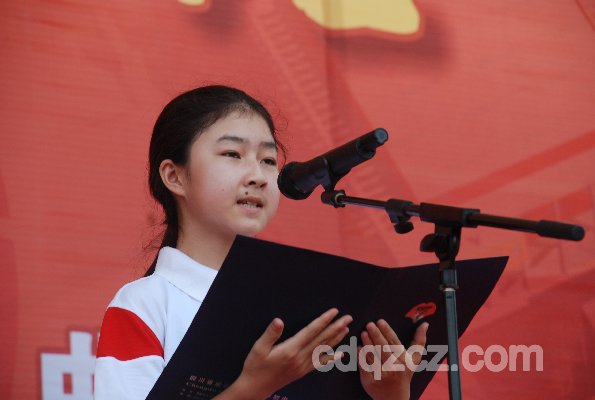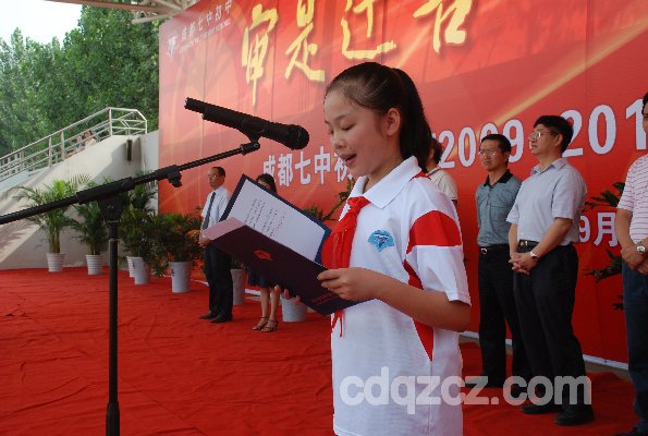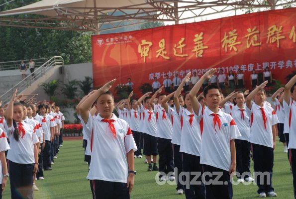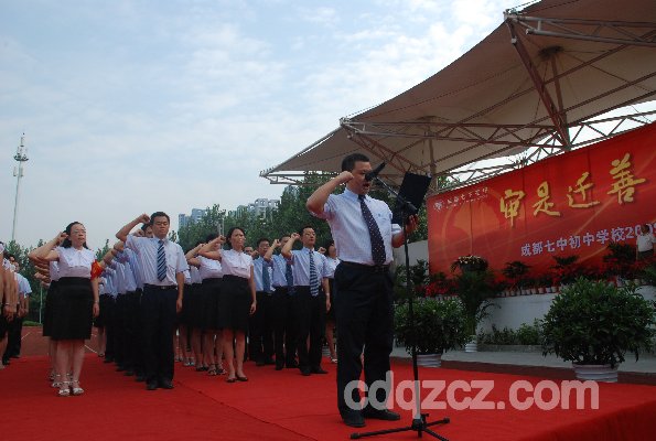 全体学生面向国旗宣誓,监誓人:成都七中党委书记、成都七中初中学校专家委员会主任委员王志坚