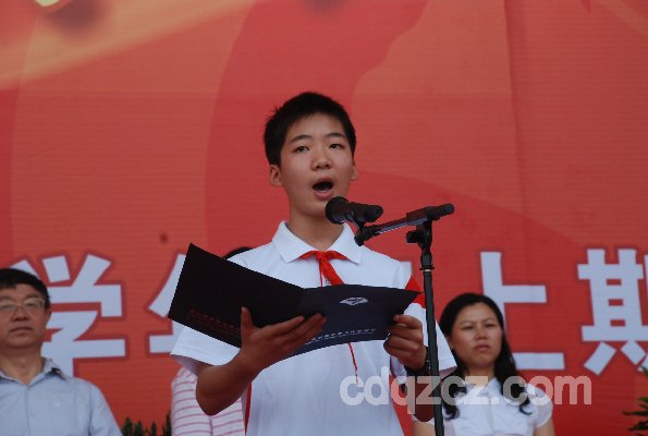 杨斌校长带领全体教师庄严宣誓,高新区社会事业局吕毅局长监誓