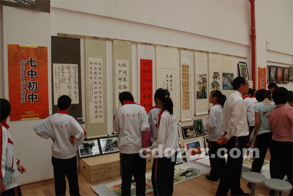 2009年4月17日,高新区第六届中小学生艺术节书法绘画摄影比赛在我校成功举行。来自全区22所中小学500多幅作品参与了展出与评比.全校师生兴致勃勃地参观了参赛作品,全区中小学美术教师在上午观看了参赛作品并相互进行了经验交流。下午是评委专家团给作品评分的时间,所有评委经过认真的评比最终选出了一二三等奖若干,目前参赛评奖结果正在统计中。在评分结束以后省市专家对此次评出的获奖作品做了精彩的点评,全体美术教师参加了点评会并感到受益非浅。