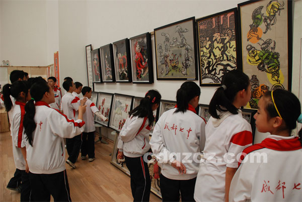 我校同学正在参观参展作品