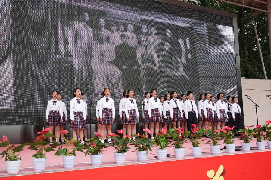 天环校区的刘梦瑶老师和刘喆老师与同学们一起演绎《感恩有你,山河无恙》。合唱团的孩子们用澄澈童声,将《如愿》的温情与《祖国不会忘记》的豪迈娓娓道来;“918”演讲比赛的优秀代表则字字铿锵,把英雄先辈的热血故事讲得直击人心;全场学子昂首挺胸,以震耳欲聋的声浪齐诵“山河为证,强国有我”,这一幕幕不仅是青春风采的绽放,更是七初师生传承红色基因的赤诚、勇担时代使命的决心。