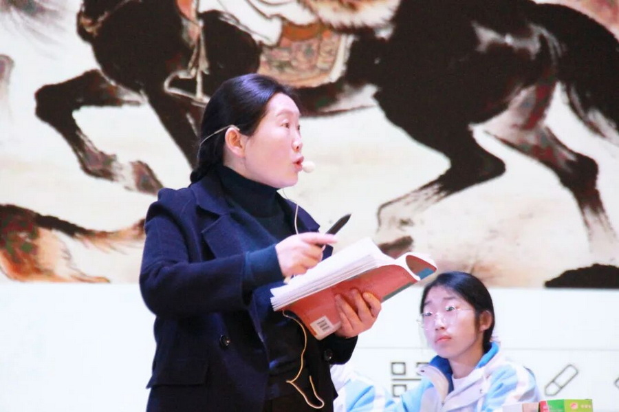 肖娜老师以任务驱动组织学习,从词人处境与时代背景切入,引导学生把握豪放词的精神底色。课堂以多元朗读为主线,指导学生在正音明节奏中感受韵律,在疏通词义、还原画面中抓住“形象”,再通过品词析句聚焦关键语词,体悟作品的“狂”与“豪”。学生在不断朗读、讨论与表达中完成由“知豪放”到“赏豪放”的建构式学习,实现人课合一、课词统一的深度品读。