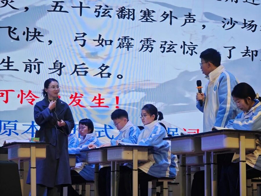 李晓艳老师以“朗读法”做为诗词学习的基本路径,层层深入,实现诗词教学的目标。从“读得准确”切入,通过字音和节奏的明确形式,实现扫清字词理解障碍的目标;通过“读出层次”完成结构与诗词内容的梳理;并以“读出壮词之‘壮’”的环节,实现文本细读,引导学生从字里行间去理解意象、情境与情感的深度品味。课堂上,学生表达空间充分,活动设计丰富,实现了思维的可视化流动与提升。