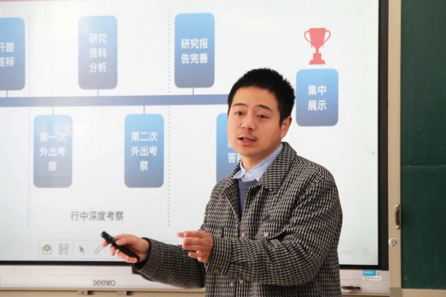 成都七中初中学校学校副校长、英语教师朱文英在英语组分会场做主题交流,围绕“单元整体教学”与“project教学”展开分享。在单元整体教学方面,朱校长系统阐释了从课程六要素分析、主题框架构建到任务链设计的完整路径,强调以驱动性问题推进思维深化,并实现教学评一体化。随后,她结合具体课例,剖析了“project教学”的定位、目标与实施范式,生动展示了其在融合语言学习与思维能力培养中的作用。