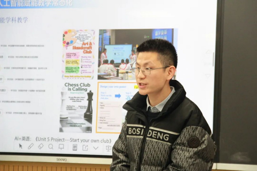 历史研讨会场,成都七中初中学校历史教研组长廖莹莹老师以《人工智能赋能历史学科项目式课程教学的实践探索》为题,分享了学校历史组AI赋能校本课程的实践案例与模式。廖老师详细介绍了学校历史组在跨学科融合的日常项目式教学、学生社团课、活动实践课以及作业设计等情境下,利用人工智能与项目式教学结合的实例。