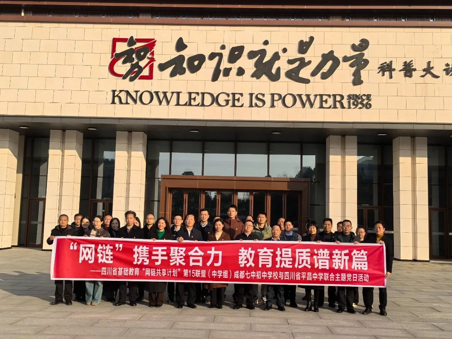 1月5日,四川省基础教育“网链共享计划”第15联盟(中学组)成都七中初中学校与四川省平昌学校走进巴中市科普大视界参观学习,开展主题党日活动。